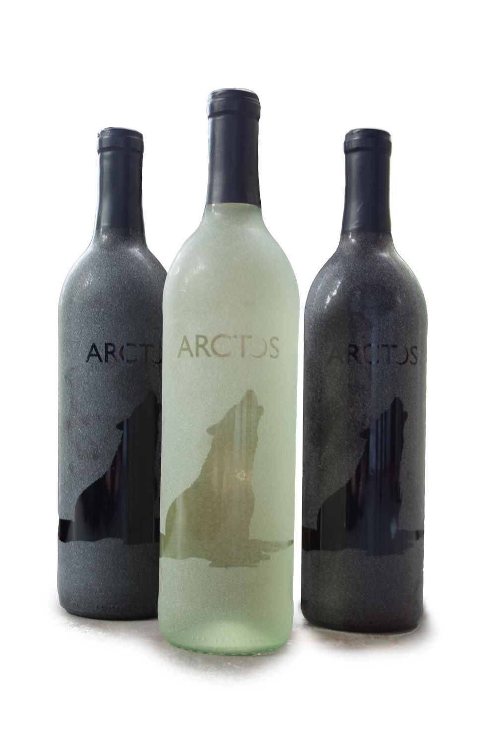 Wine bottle design concept created for a gift series for a social event honoring those who donate to the Toronto zoo. This bottle features the arctic wolf and was created by sandblasting the surface with the image masked by vinyl.