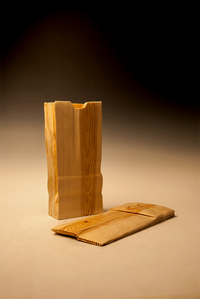 Reduction sculpture series revealing the very object that essentially derives from the raw material. Detailed carving from laminated pieces of pine.